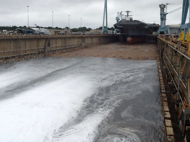 Ngày hôm qua 11/10, Hải quân Mỹ đã bơm 400 triệu lít nước vào âu tầu để tiến hành thử nghiệm siêu tàu sân bay thế hệ mới mang tên USS Gerald R. Ford (CVN-78).
