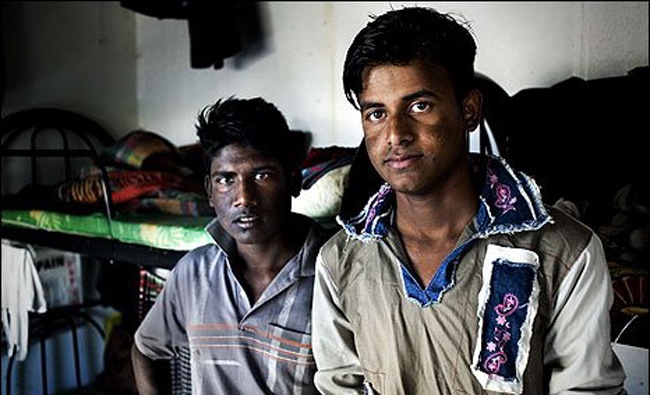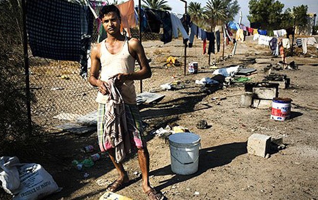 Họ giặt đồ trong những thùng sơn bỏ đi, phơi quần áo trên rào sắt, và nấu nướng bằng cách ghép vài viên gạch rồi đặt nồi lên. Sống tại một đất nước làm giàu từ dầu mỏ, nhưng các công nhân này lại không có dầu để nấu ăn.