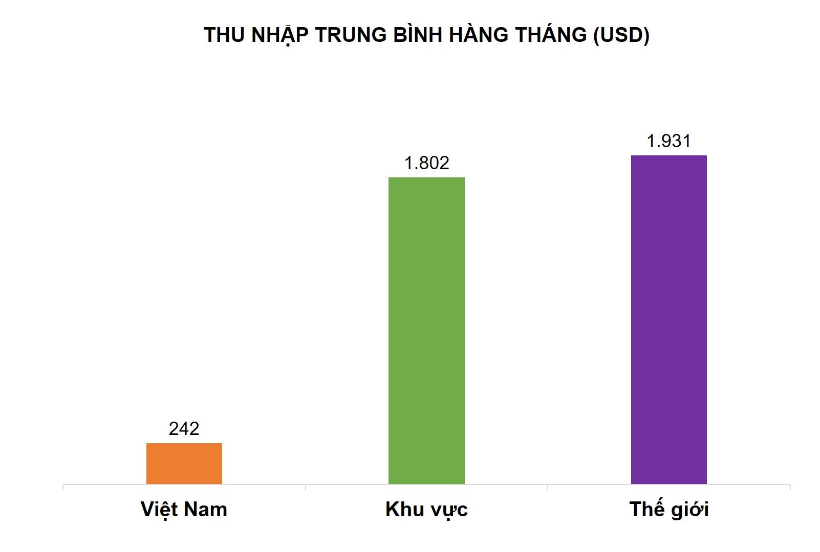Đây là một trong những nguyên nhân khiến thu nhập trung bình của lao động Việt chỉ đạt khoảng 242 USD/tháng, thấp hơn 1/7 khu vực và 1/8 toàn cầu.