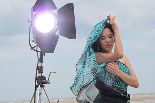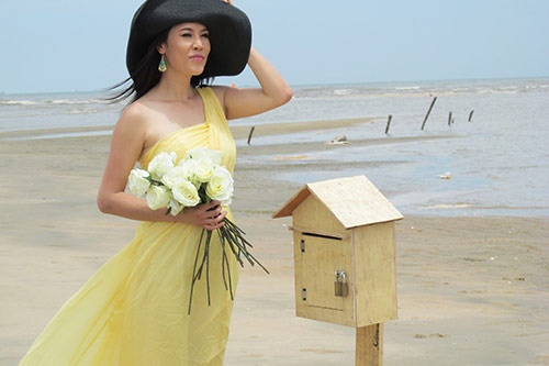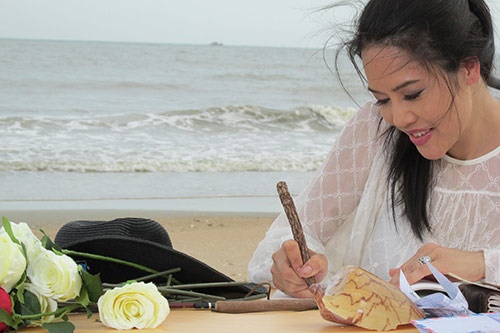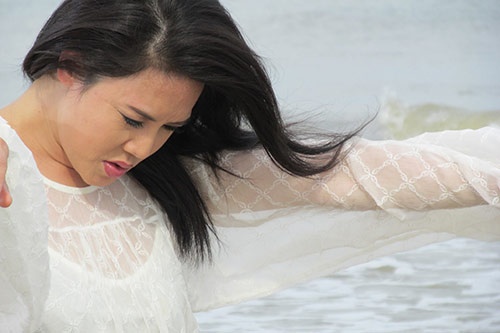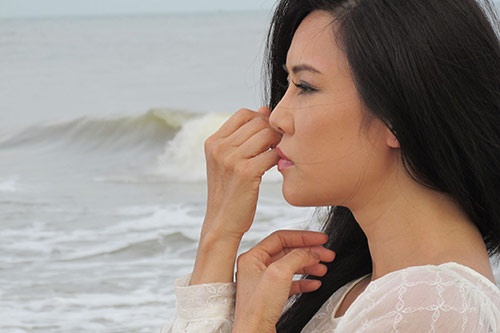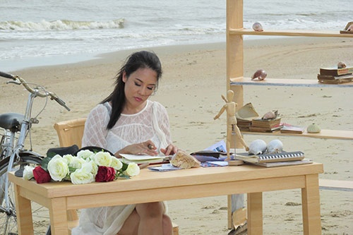 | Thu Phương quay MV Biển nỗi nhớ và Em ở Long Hải (Vũng Tàu). |