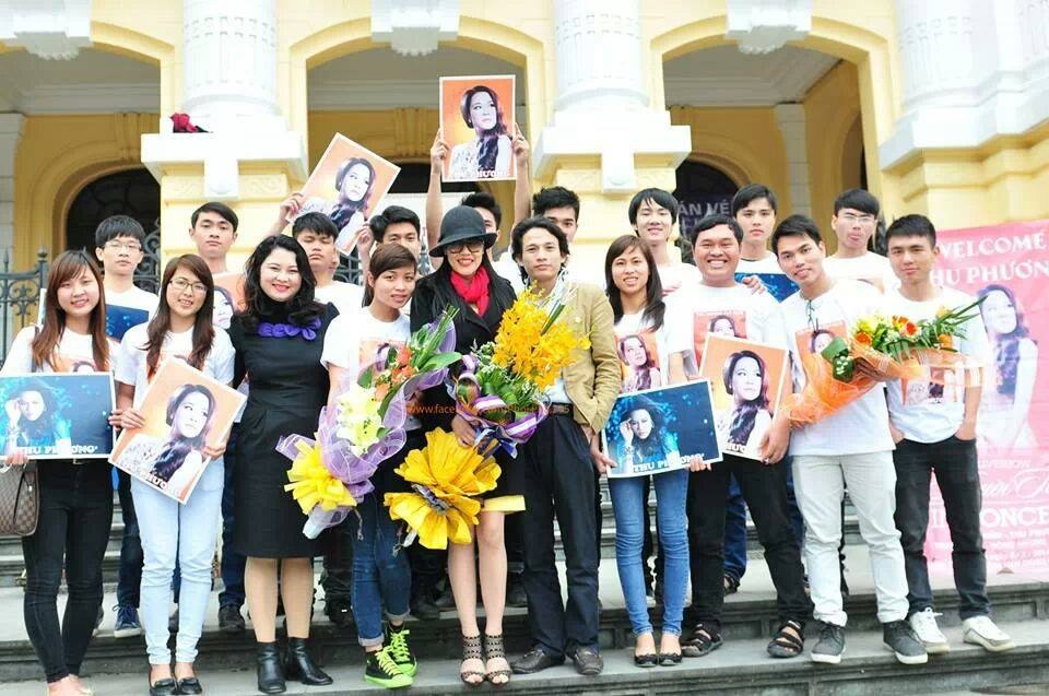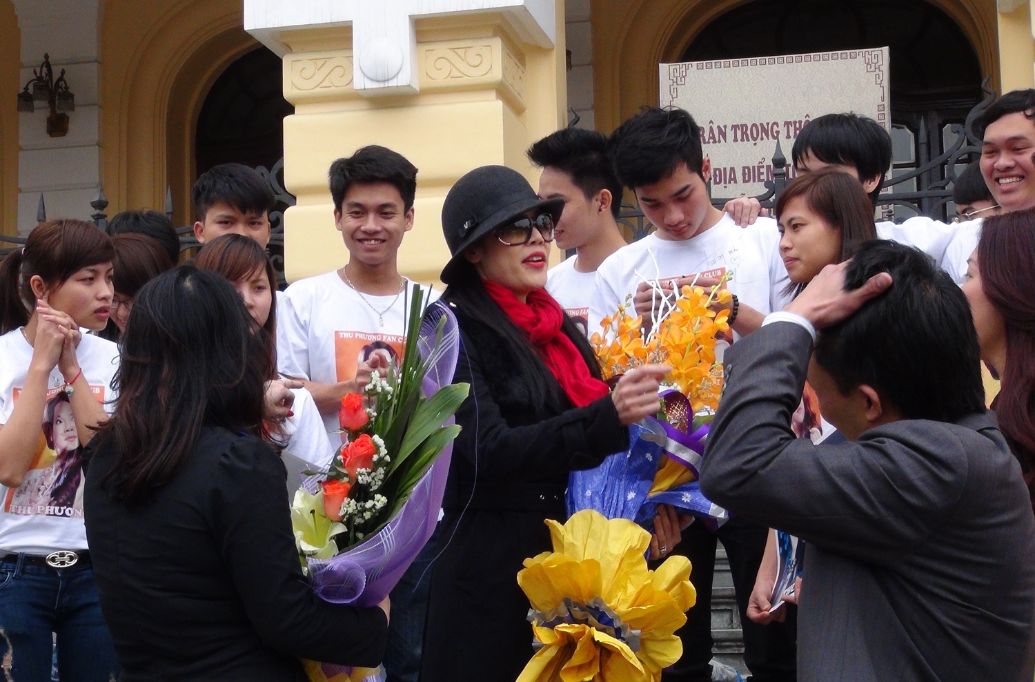 | Thu Phương rạng rỡ bên người hâm mộ. Xúc động trước tình cảm của các fan, nữ ca sĩ chia sẻ không thể hình dung mình lại được đón chào và thương mến đến như vậy. |