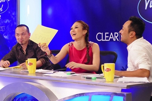 | Logo quảng cáo xuất hiện tràn ngập tại khu vực bàn giám khảo của chương trình Vietnam Idol. |