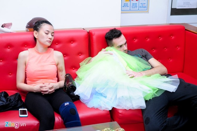 | Thu Thủy và bạn nhảy Daniel ngủ gục ngay tại phòng tập. |