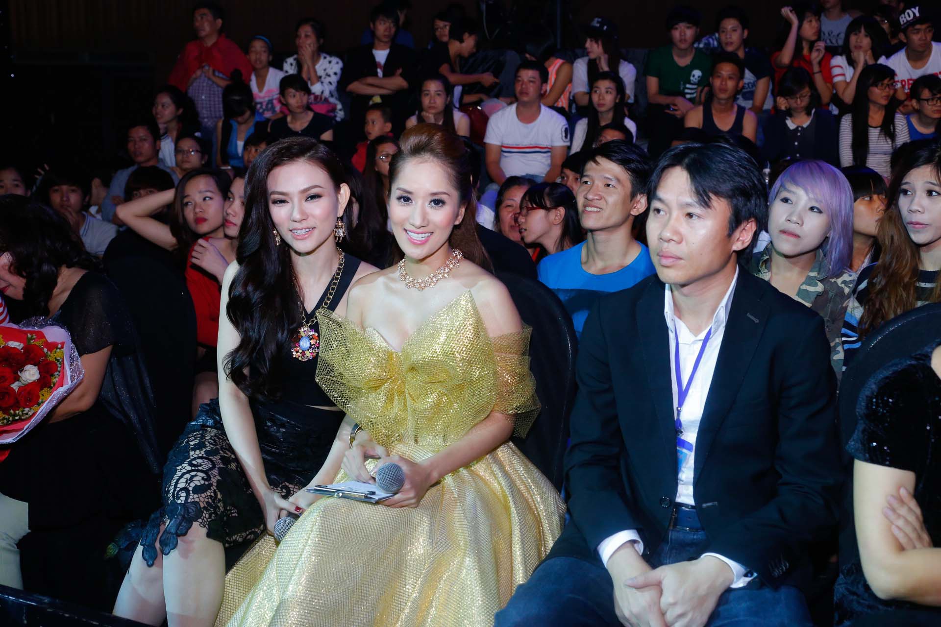Cô ngồi ở hàng ghế khán giả với MC Khánh Thi. |
