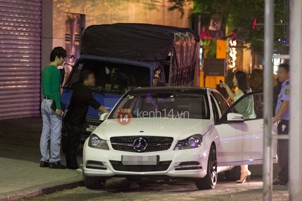 | Cô không cầm lái mà để một anh chàng chở mình đi diễn. Điều này khiến nhiều người thắc mắc liệu đây có phải bạn trai của Thu Thủy? |