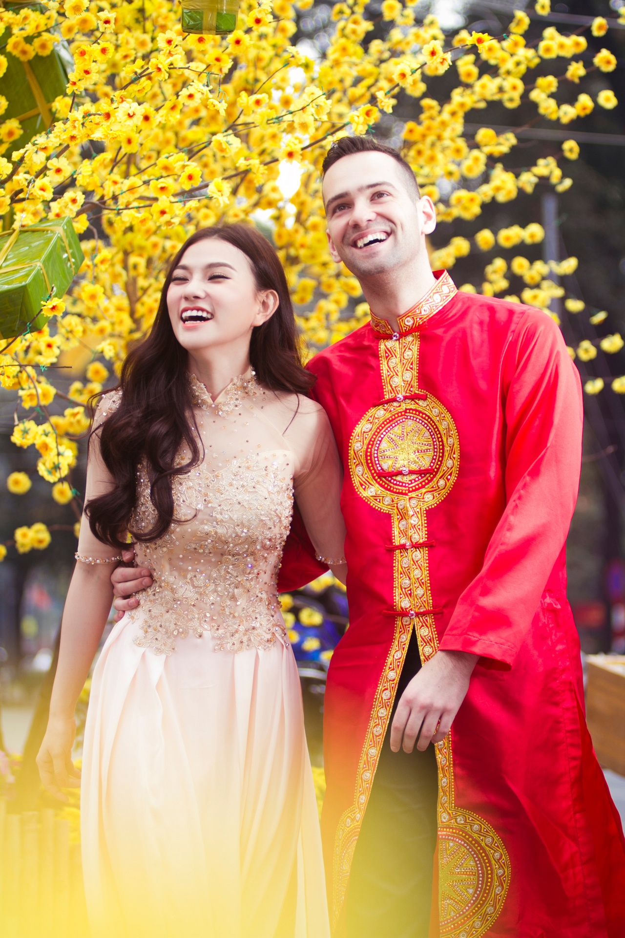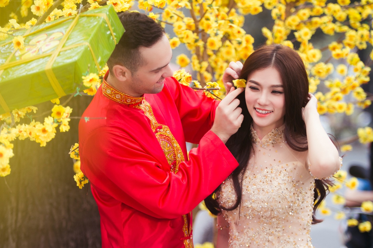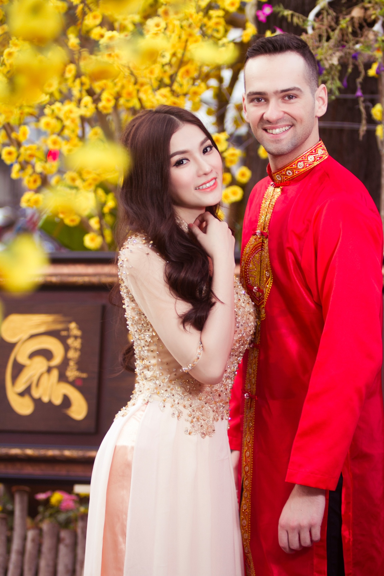 Trước khi quay lại với sàn tập của "Bước nhảy hoàn vũ", giọng ca "Ai quên được ai" tranh thủ cùng bạn nhảy Daniel thực hiện một bộ ảnh chào xuân đặc biệt với áo dài truyền thống.