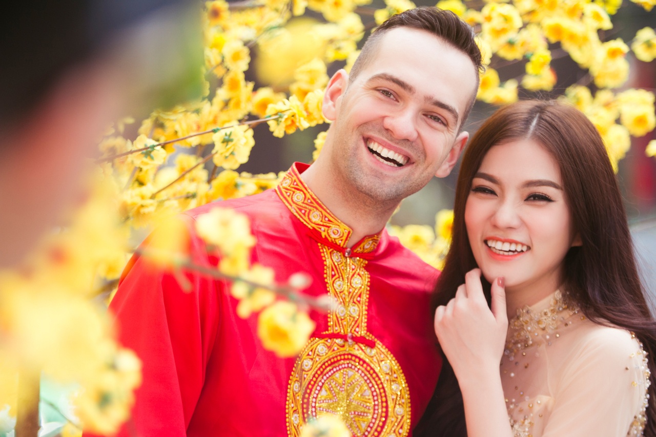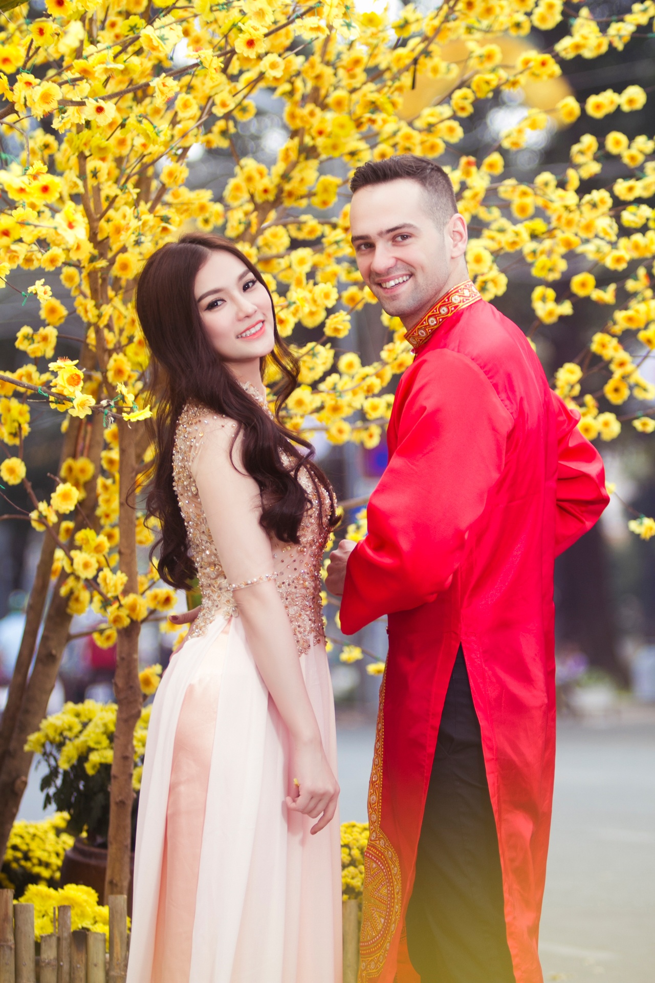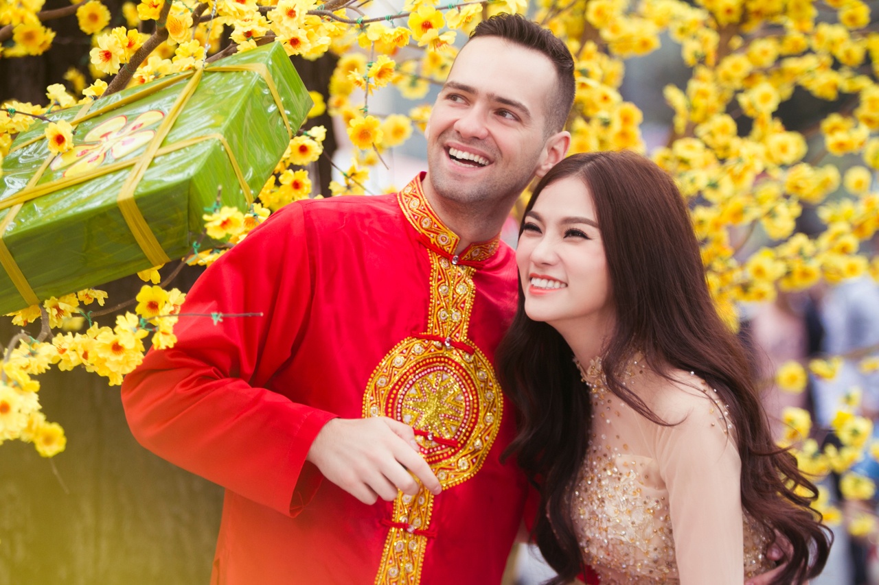 Trước khi quay lại với sàn tập của "Bước nhảy hoàn vũ", giọng ca "Ai quên được ai" tranh thủ cùng bạn nhảy Daniel thực hiện một bộ ảnh chào xuân đặc biệt với áo dài truyền thống.