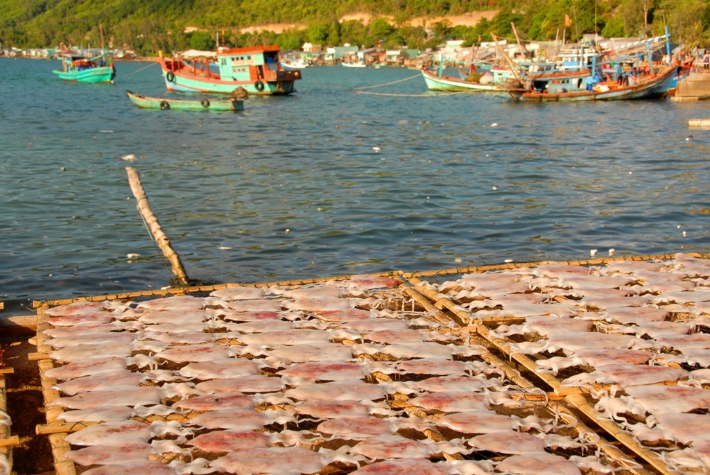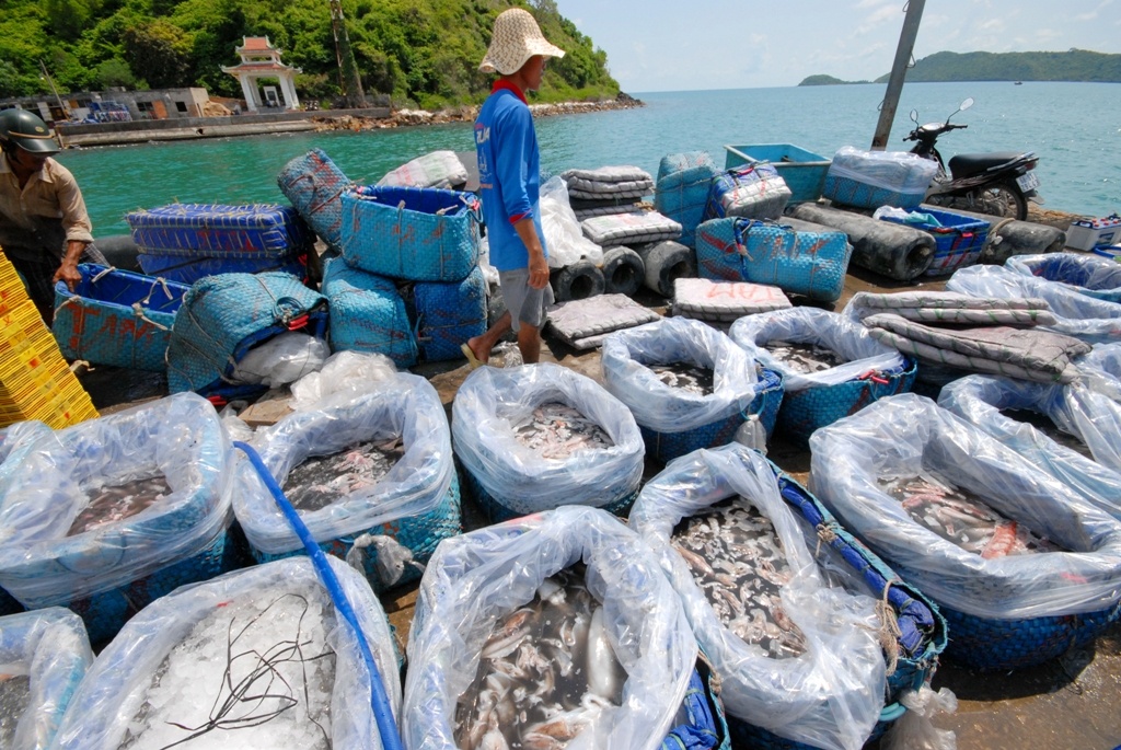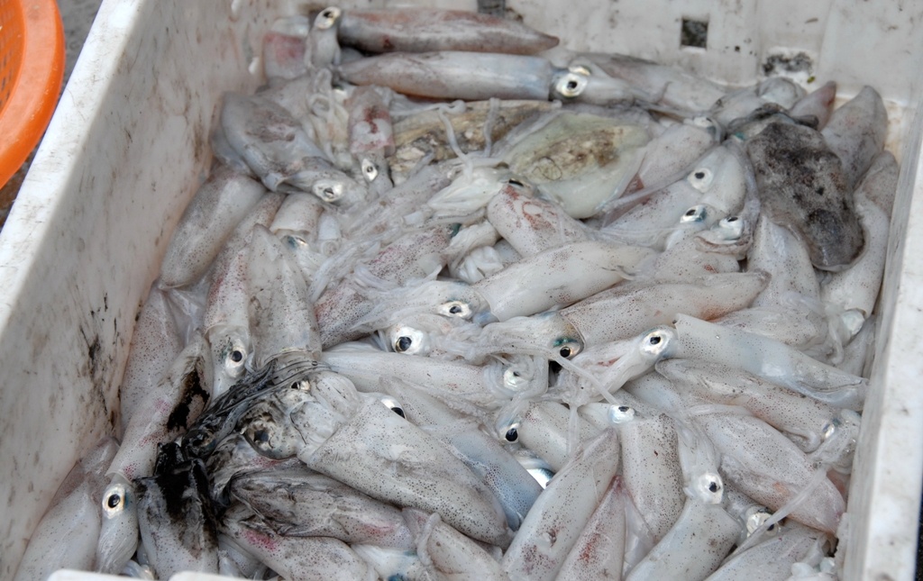 Đầu ra của mực khá ổn định do thương lái luôn chờ ngư dân mang vào để thu mua.