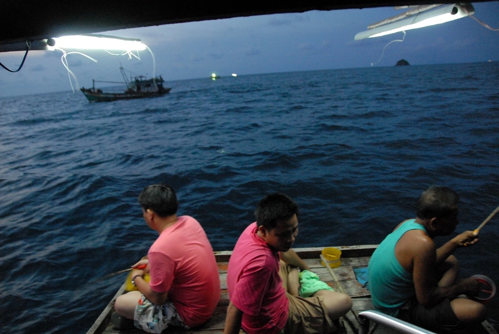 Chỉ cần một chiếc thuyền máy, cần tre và mồi cao su sơn màu sặc sỡ, ngư dân ở quần đảo Nam Du (huyện Kiên Hải, Kiên Giang) thu từ 1 đến 3,5 triệu đồng mỗi đêm ra khơi câu mực.