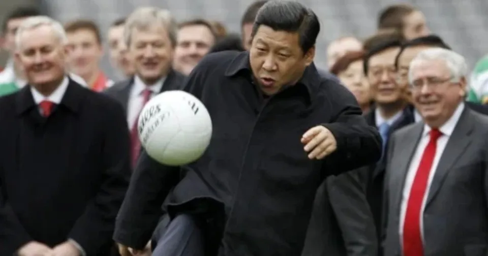 Bức ảnh Chủ tịch Trung Quốc Tập Cận Bình sút bóng từng gây sốt trên mạng xã hội. |