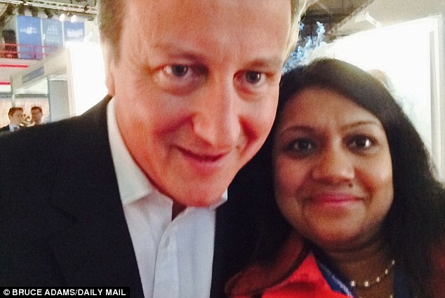 | Cô Parveen Hassan, một nhà hoạt động vì quyền phụ nữ, chụp ảnh "tự sướng" cùng Thủ tướng Anh trong một sự kiện. Ảnh: PA |