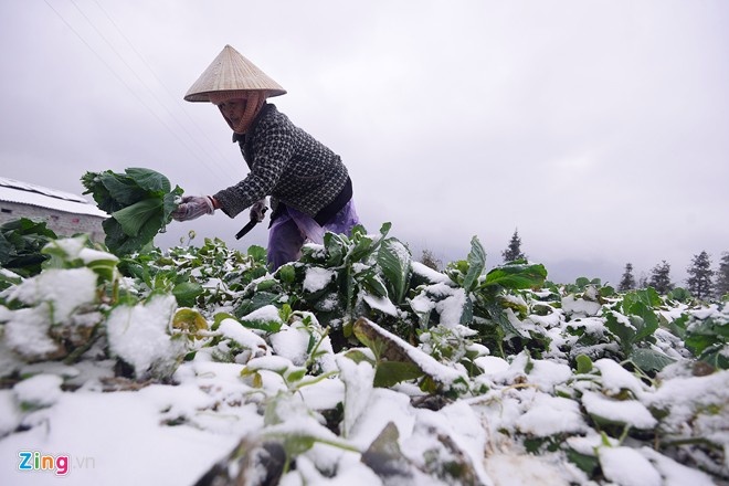 | Nông dân Sa Pa cắt rau trước khi bị tuyết làm cho dập nát. Ảnh: Lê Hiếu. |