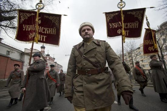 Cùng lúc đó, ít nhất 10.000 người cầm cờ Nga diễu hành ở trung tâm Moscow để ủng hộ việc Nga sử dụng sức mạnh quân sự tại Ukraina. Một số người mặc quân phục từ thời Liên Xô cũ và hô các khẩu hiệu phản đối chủ nghĩa phát xít.
