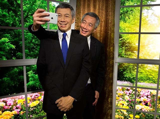 Ông Lý chụp ảnh tự sướng với tượng sáp (bên trái) của chính mình tại Bảo tàng Madame Tussauds của Singapore. Tại đây, người ta trưng bày tượng sáp của những người nổi tiếng cả của Singapore và thế giới. “Thật tuyệt khi Singapore đã có bảo tàng tượng sáp này”, ông Lý chia sẻ. |