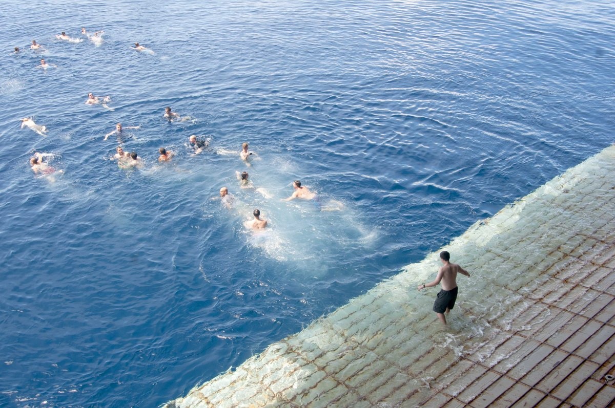 Một góc khác về hoạt động bơi lội của các thủy thủ trên tàu sân bay USS Dwight D. Eisenhower. |