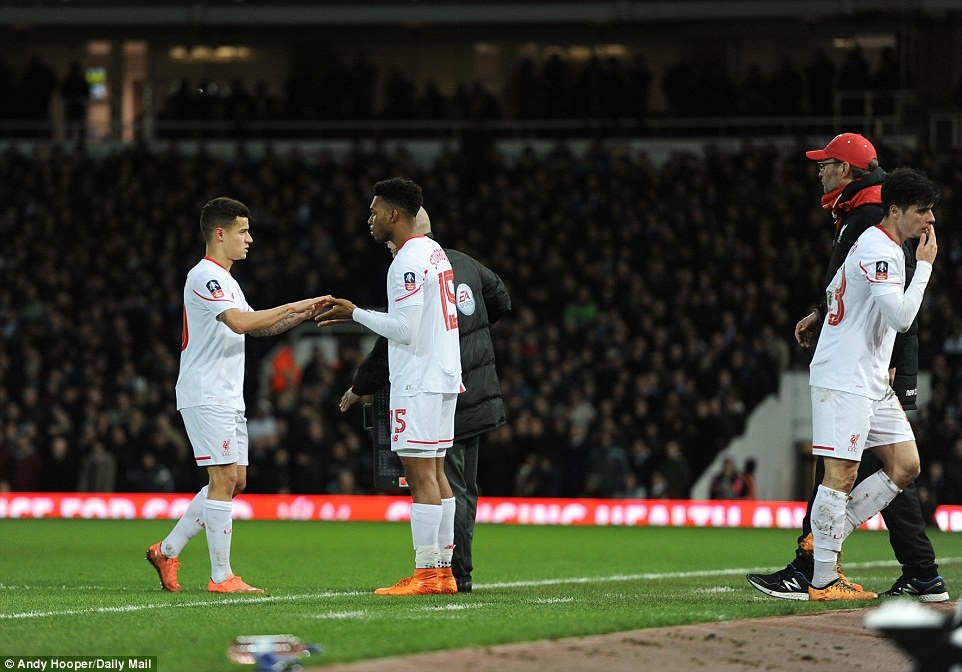 | Phút 59, HLV Klopp quyết định điều chỉnh nhân sự trên hàng công khi đưa Sturridge và Origi vào sân. |