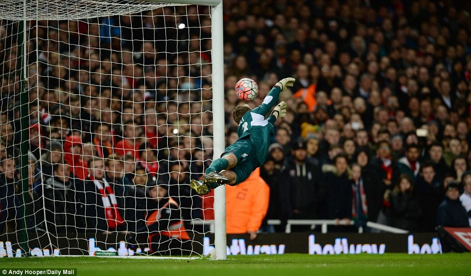 | Liverpool vất vả chống những pha lên bóng của đội chủ nhà West Ham. Thủ môn Mignolet có tình huống bay người cứu thua cho "The Kop" sau cú đá phạt của Payet. |