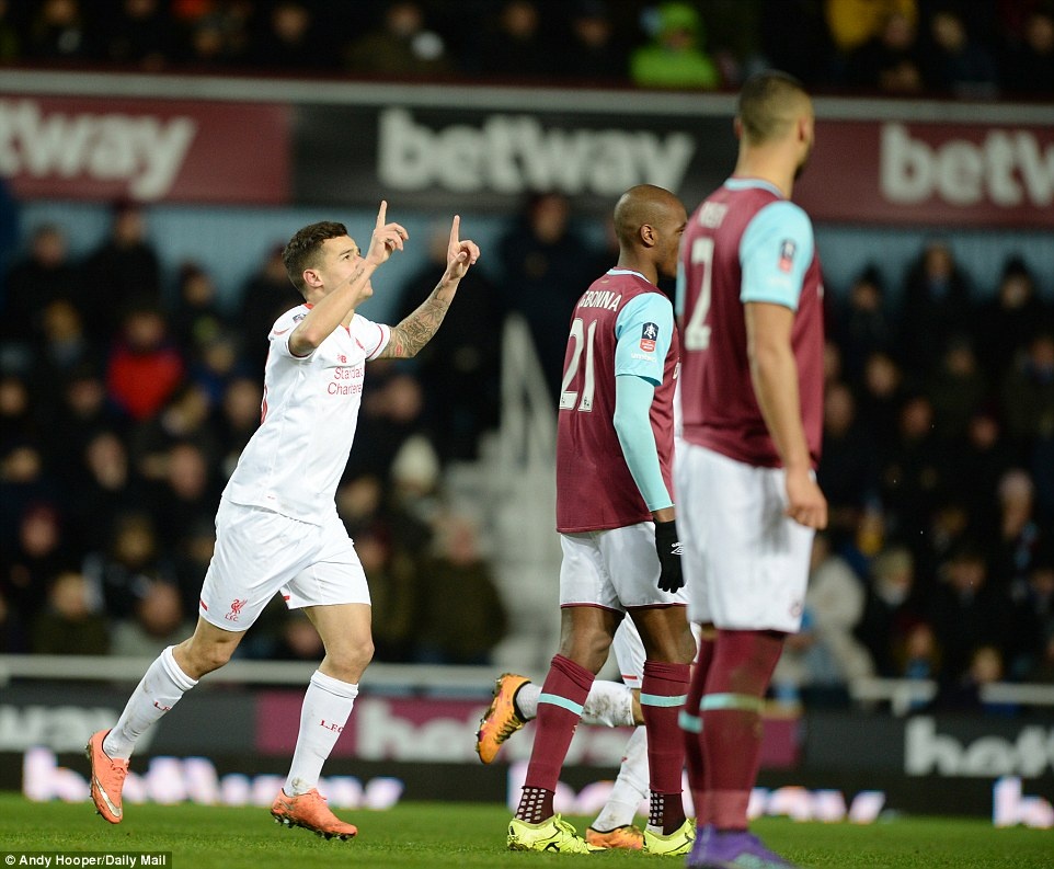 Tiền vệ Coutinho ghi bàn trong trận đá lại ở vòng 4 cúp FA trên sân của West Ham, nhưng Liverpool vẫn phải chịu thất bại 1-2.