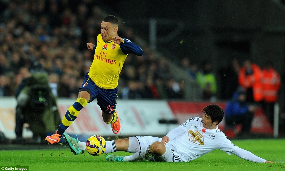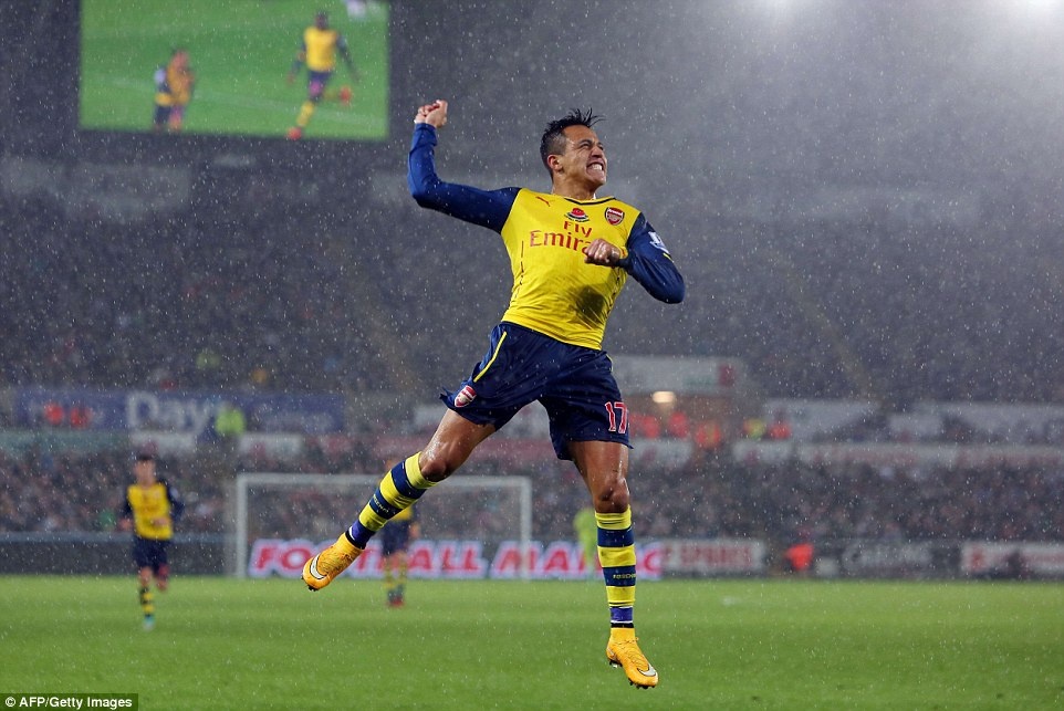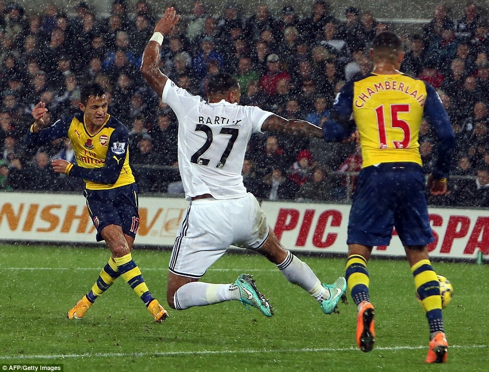 | Kể từ sau pha dứt điểm hỏng ăn của Welbeck, đội khách chơi khởi sắc hơn hẳn. Đến phút 63, từ pha phản công ấn tượng, Welbeck ngoặt bóng trở lại trước khi chuyền vào trong để Alexis Sanchez dễ dàng dứt điểm tung lưới Swansea. |