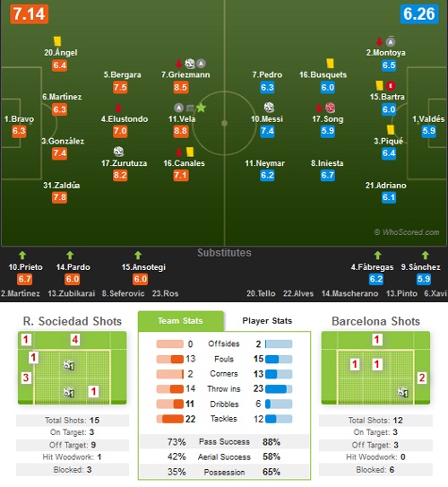 | Các thông số trong trận Sociedad 3-1 Barca. |