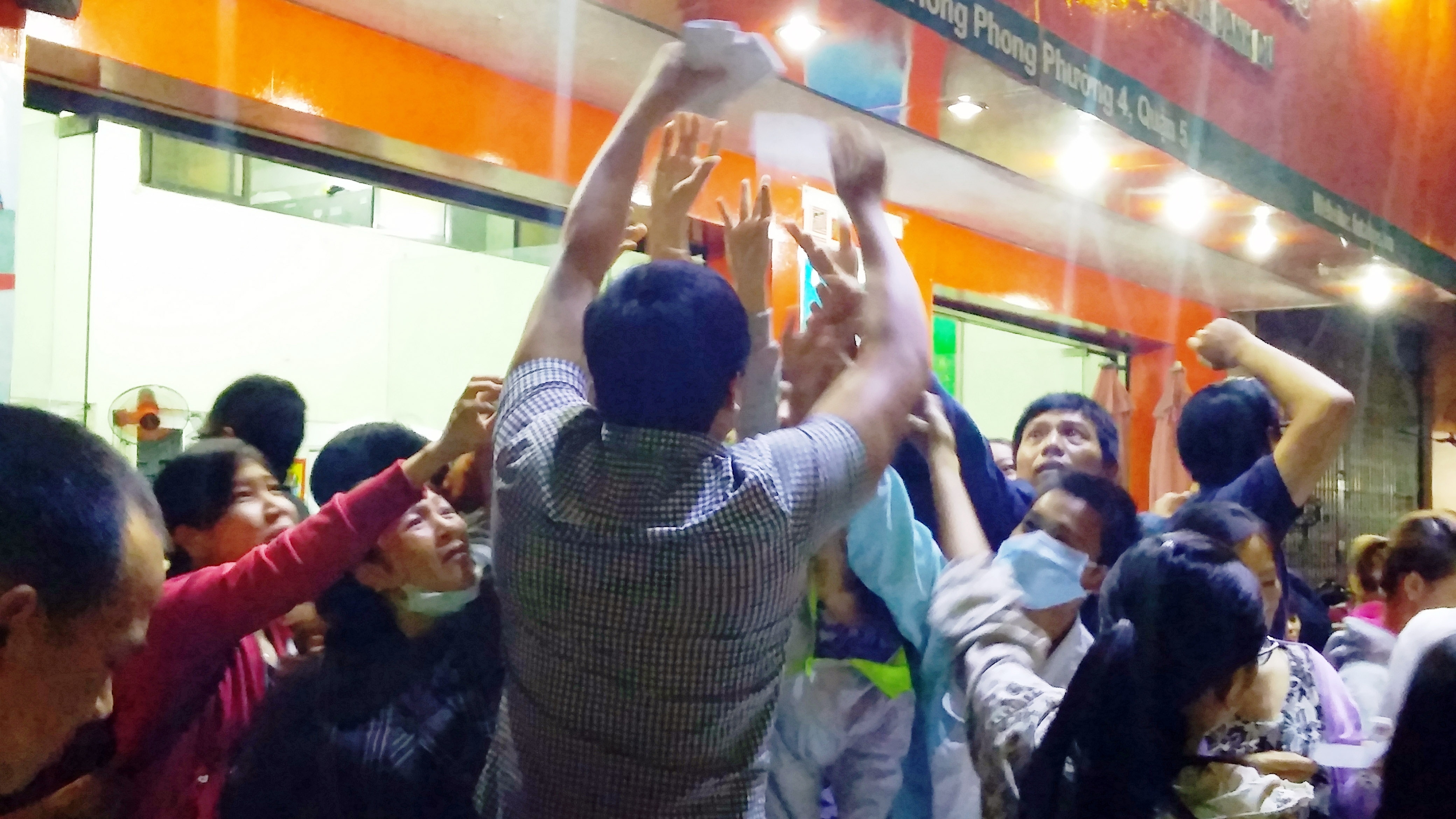 | Người dân chen nhau khi nhân viên Phương Trang phát số thứ tự. Ảnh: Trường Nguyên. |