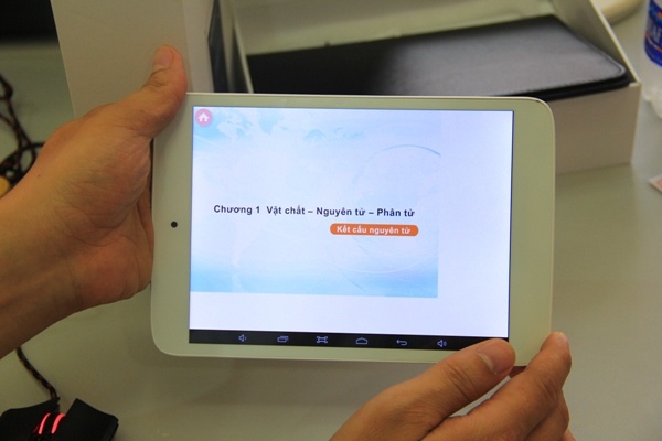 Chiếc máy này đã được cài sẵn tiếng Việt và bên trong có rất nhiều phần mềm sách giáo khoa điện tử từ lớp 10 đến lớp 12 và các chương trình dành cho thiếu nhi…