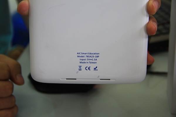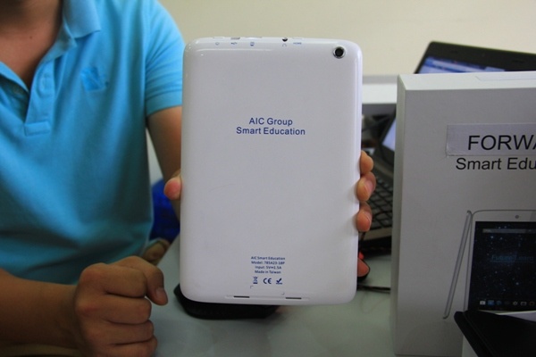 Đáng chú ý, mặt sau của máy có để dòng chữ thương hiệu AIC Group, phía dưới là tên chiếc máy tính bảng Smart Education (giáo dục thông minh). Chiếc máy tính bảng này có nguồn gốc từ Đài Loan.