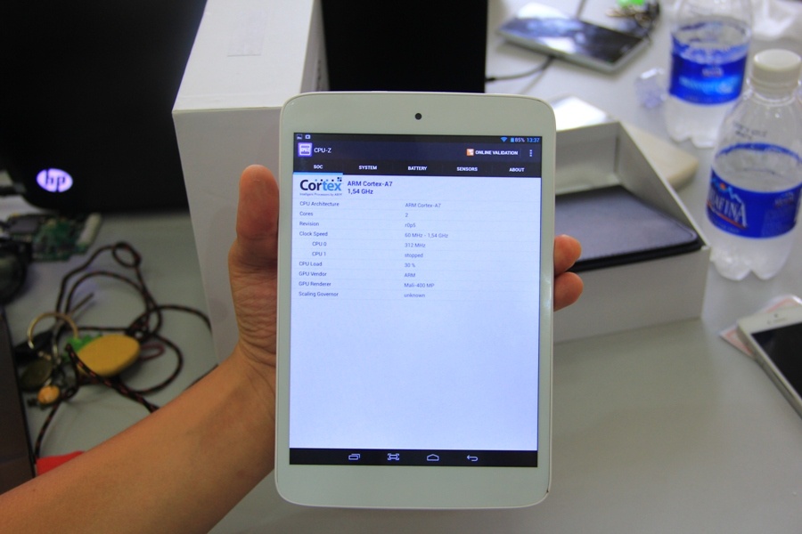 Chiếc máy tính bảng này dùng hệ điều hành Android 4.2.2, pin có dung lượng 3.600mAh và không có 3G, chỉ dùng kết nối Wi-Fi.