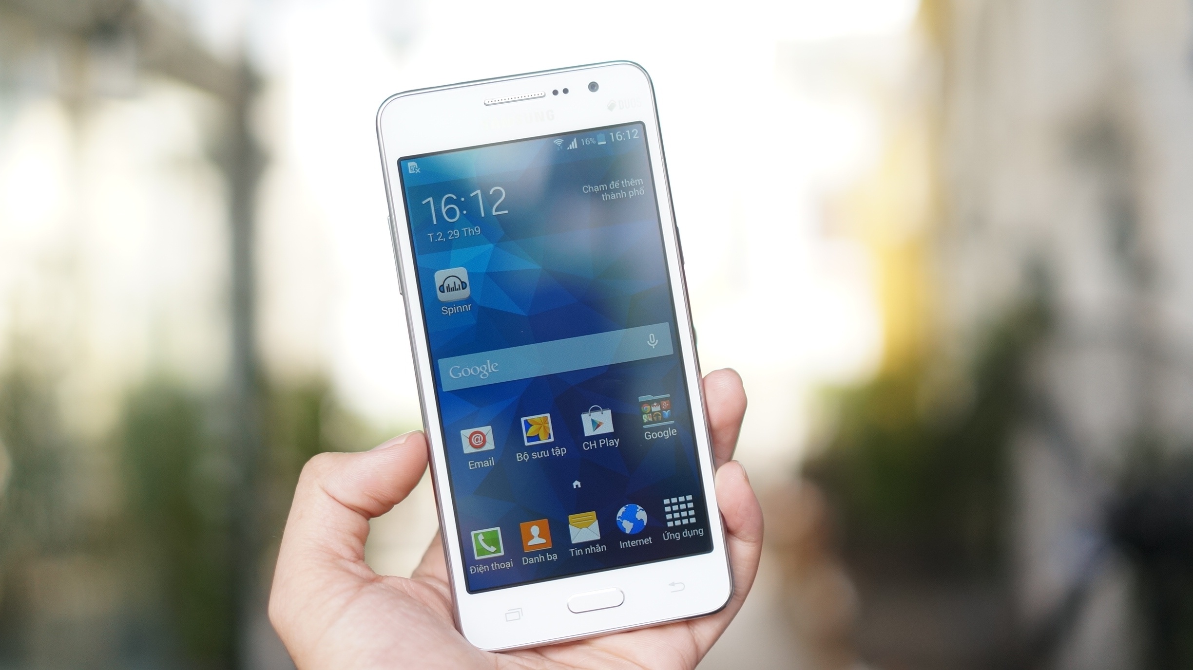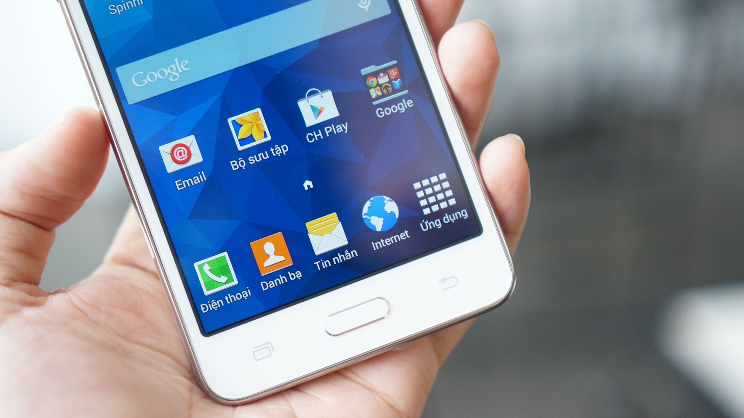 | Galaxy Grand Prime dù chưa được Samsung công bố chính thức nhưng sẽ bán tại Việt Nam trong thời gian tới. Đặc điểm nổi bật của model này là camera trước lên đến 5 MP. Máy có thiết kế khá vuông, màn hình 5 inch độ phân giải 540 x 960 pixel. |