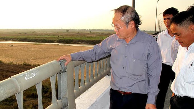 | Kiểm tra hiện trường cầu Đà Rằng mới bị hư hỏng. |