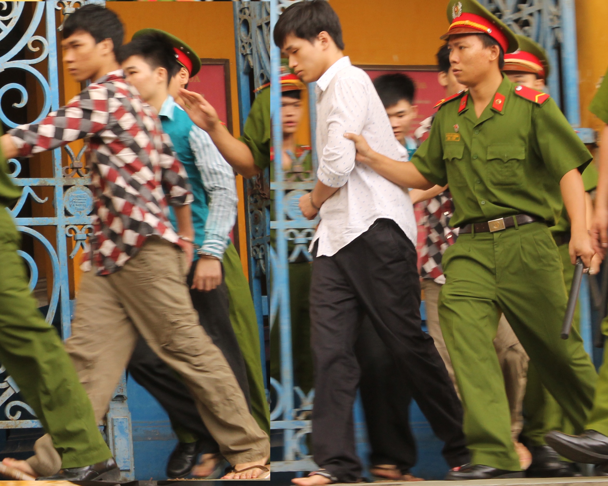 | Tuấn và Đường bị dẫn giải về trại giam sau phiên xét xử. |