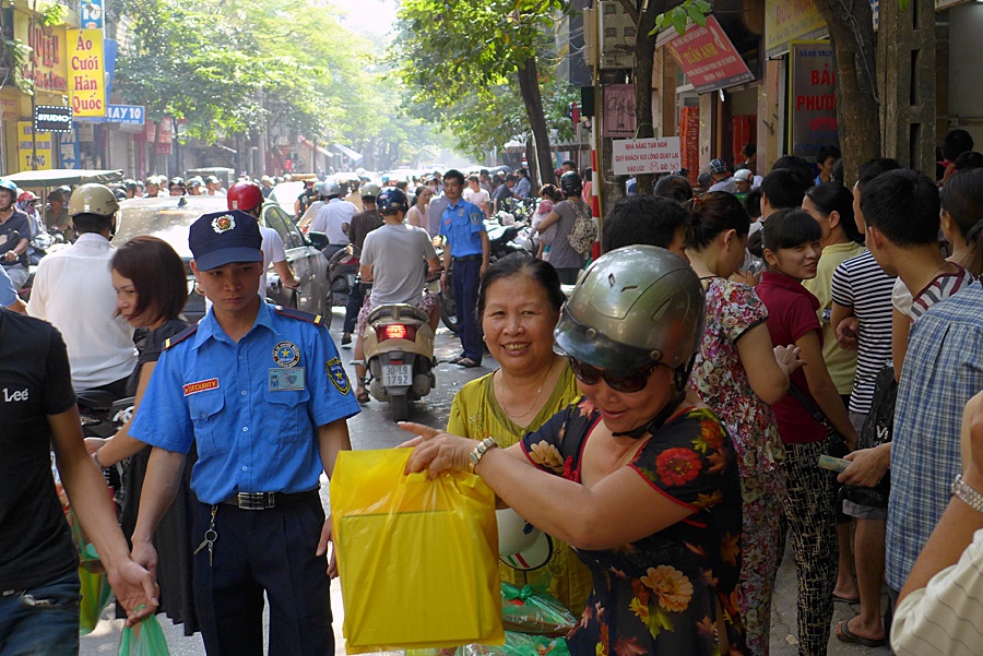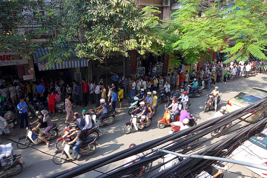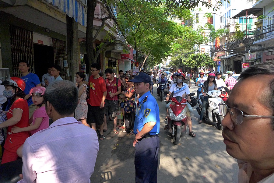 | Chăng dây làm hàng rào xếp hàng trên vỉa hè chạy dài hàng trăm mét trước cửa hàng. |