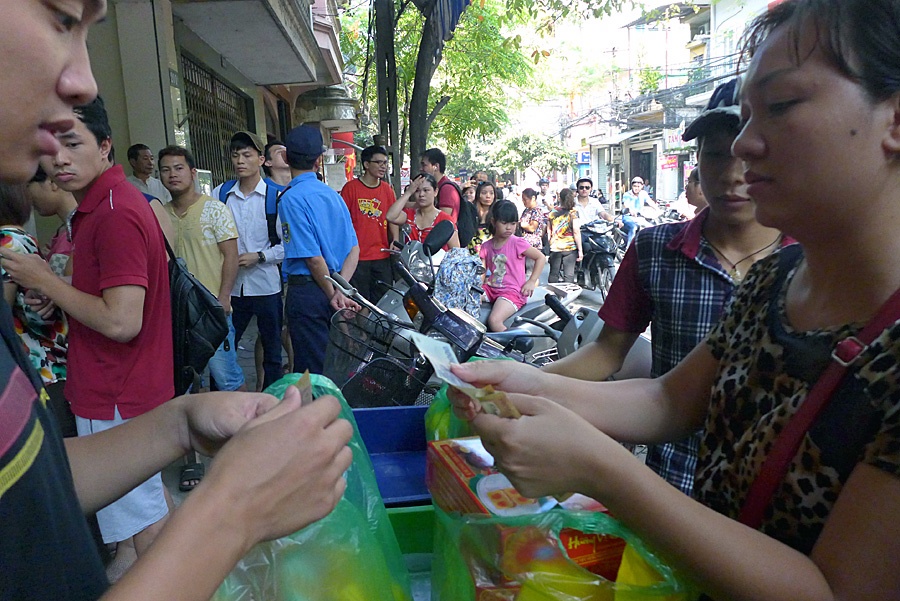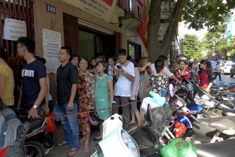 | Mỗi người chỉ được mua từ hai đến bốn hộp. Khách nào mua số lượng ít được người khác nhờ mua luôn thể rồi ra ngoài chia nhau. |