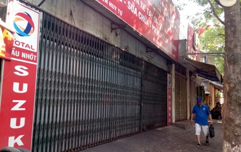 | Nhiều hàng quán sầm uất ở phố Trần Thánh Tông đóng cửa từ sáng 11/10 . |