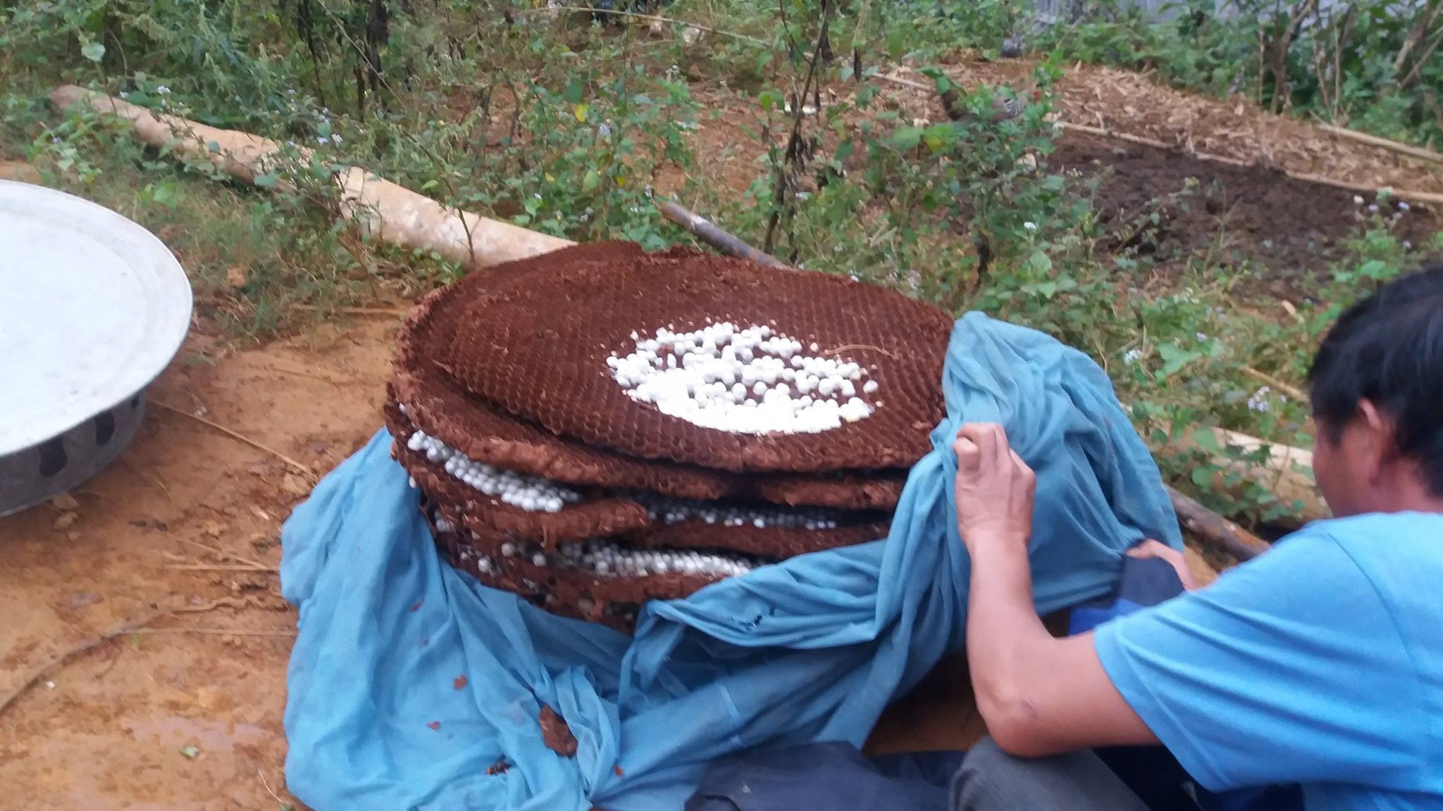 Ông Trường thông tin, ong đất làm tổ tự nhiên, xuất hiện nhiều ở các vùng núi Lào Cai. "Một tổ to bán được khoảng 3-5 triệu đồng nhưng chẳng bõ bởi nếu người nuôi bị một con đốt thôi có thể còn mất nhiều tiền hơn thế, thậm chí tử vong. Vì vậy, xã cũng đang khuyến cáo người dân nên cảnh giác loài ong này", ông nói.