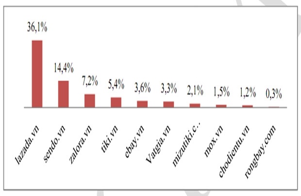 Năm 2014, tổng doanh thu trên sàn TMĐT đạt 1.662 tỷ đồng, trong đó, doanh thu của 10 sàn giao dịch TMĐT dẫn đầu chiếm đến 75%. Nguồn: VECITA. |