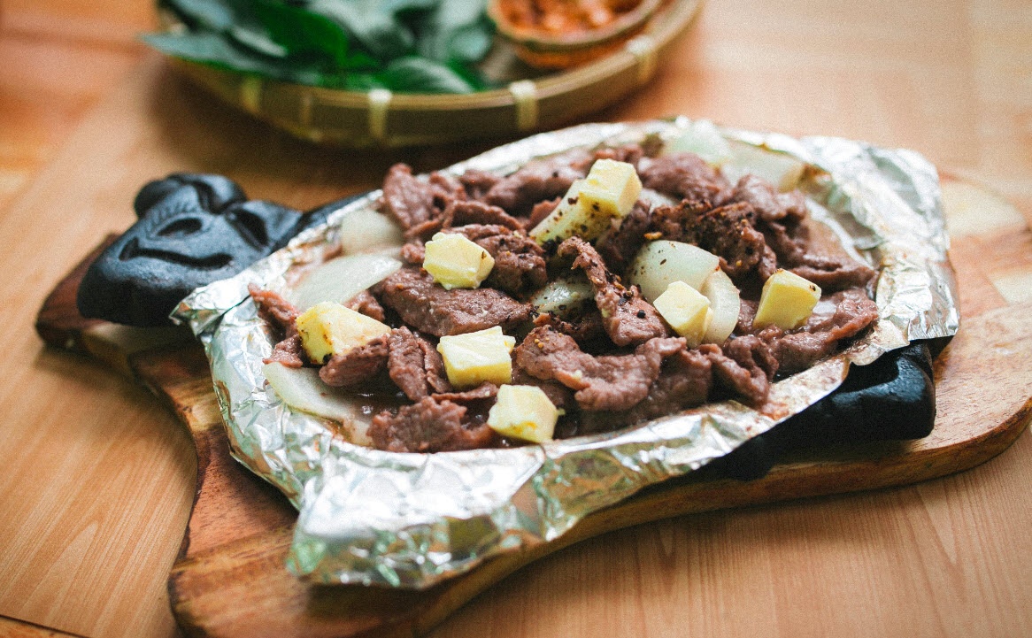 | Đặc trưng của bò nầm nướng không phải là gia vị tẩm ướp mà là cách nướng đặc biệt cùng với sự lựa chọn nguyên liệu tươi ngon từ thịt tới rau củ ăn kèm. Cách ăn cũng là điểm làm nên sự khác biệt của món ăn này. Đồ nướng không chín trực tiếp trên mặt lửa mà chín bằng sức nóng của gang và giấy bạc, giúp món ăn vẫn giữ được hương vị nướng độc đáo, đảm bảo an toàn cho người thưởng thức. Bạn có thể thưởng thức set bò nầm nướng tại ZUBO với giá chỉ 99.000 đồng/set. |