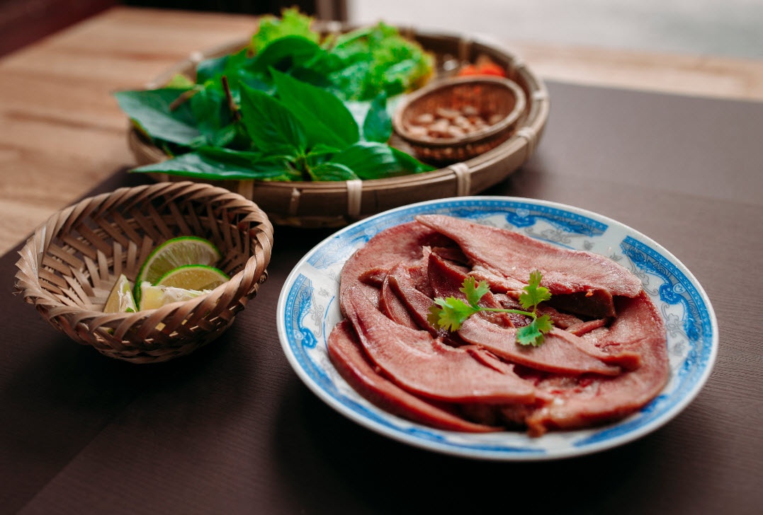 | Món lưỡi xông trà với mùi vị của trà và sự mềm của lưỡi heo khiến thực khách khó cưỡng khi dùng. |