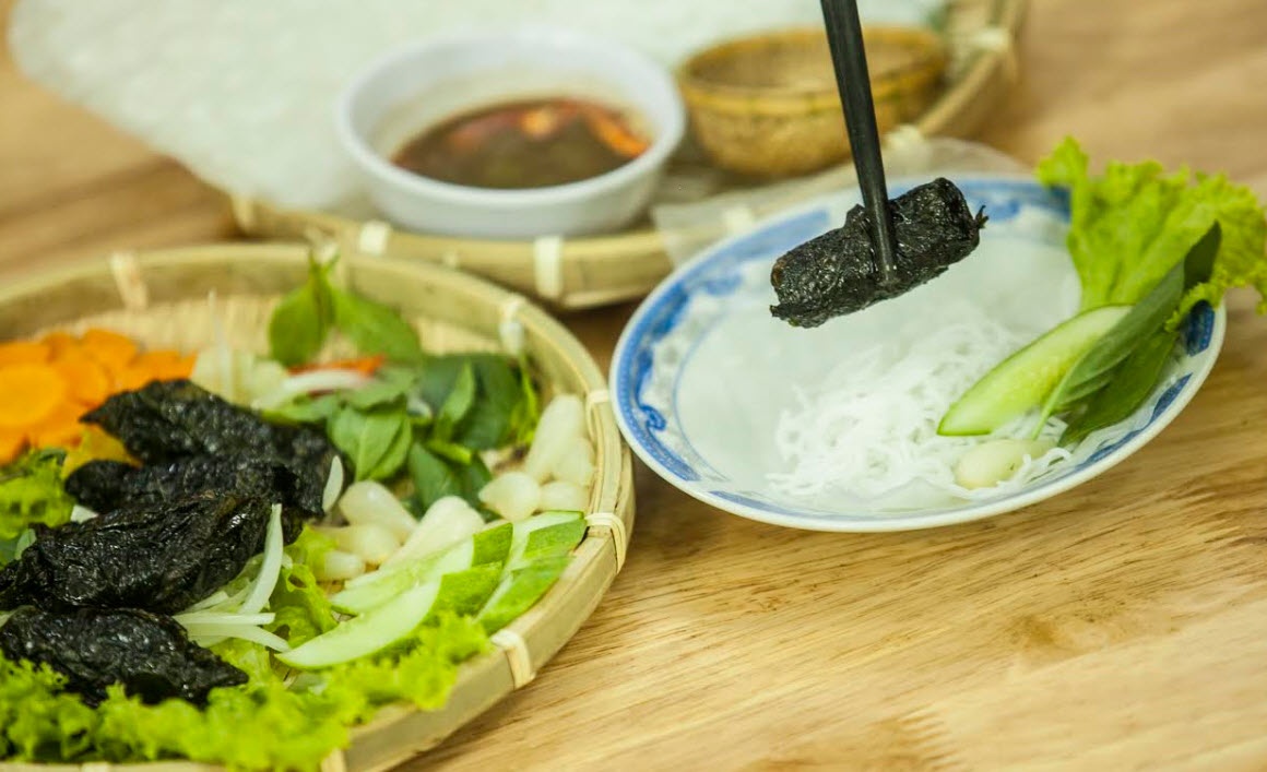 Dưới tiết trời mát mẻ của mùa mưa, cùng bạn bè, người thân nhâm nhi món bò nầm nướng được tẩm ướp đậm đà, thơm cay "xèo xèo" trên khay giấy bạc là những trải nghiệm hấp dẫn.