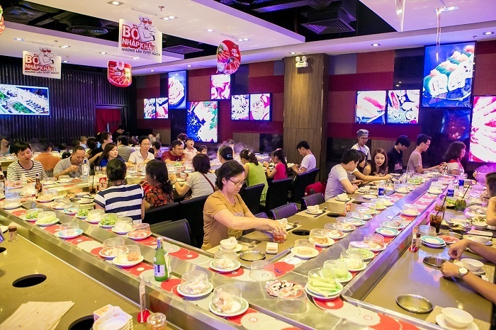 Tại Kichi Kichi, bạn dễ dàng chọn chỗ ngồi thoải mái với thiết kế dành cho nhóm bạn bè, gia đình hay các dãy ghế cao với dải băng chuyền chuyển động không ngừng mang đến trải nghiệm mới mẻ đầy thú vị. |