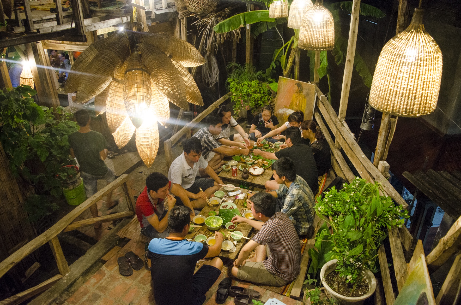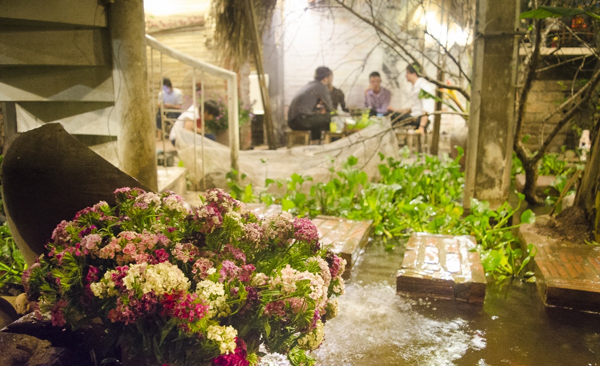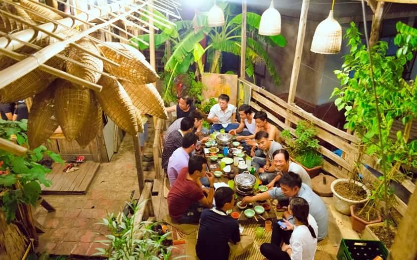 | Bước vào quán, thực khách có cảm giác như lạc về một vùng quê xanh mát thanh bình của Bắc Bộ với những thác nước, mái nhà tranh, lũy tre làng... được bày trí tỉ mỉ như thật, đem lại sự thoải mái thư giãn lẫn hoài niệm cho nhiều người. |