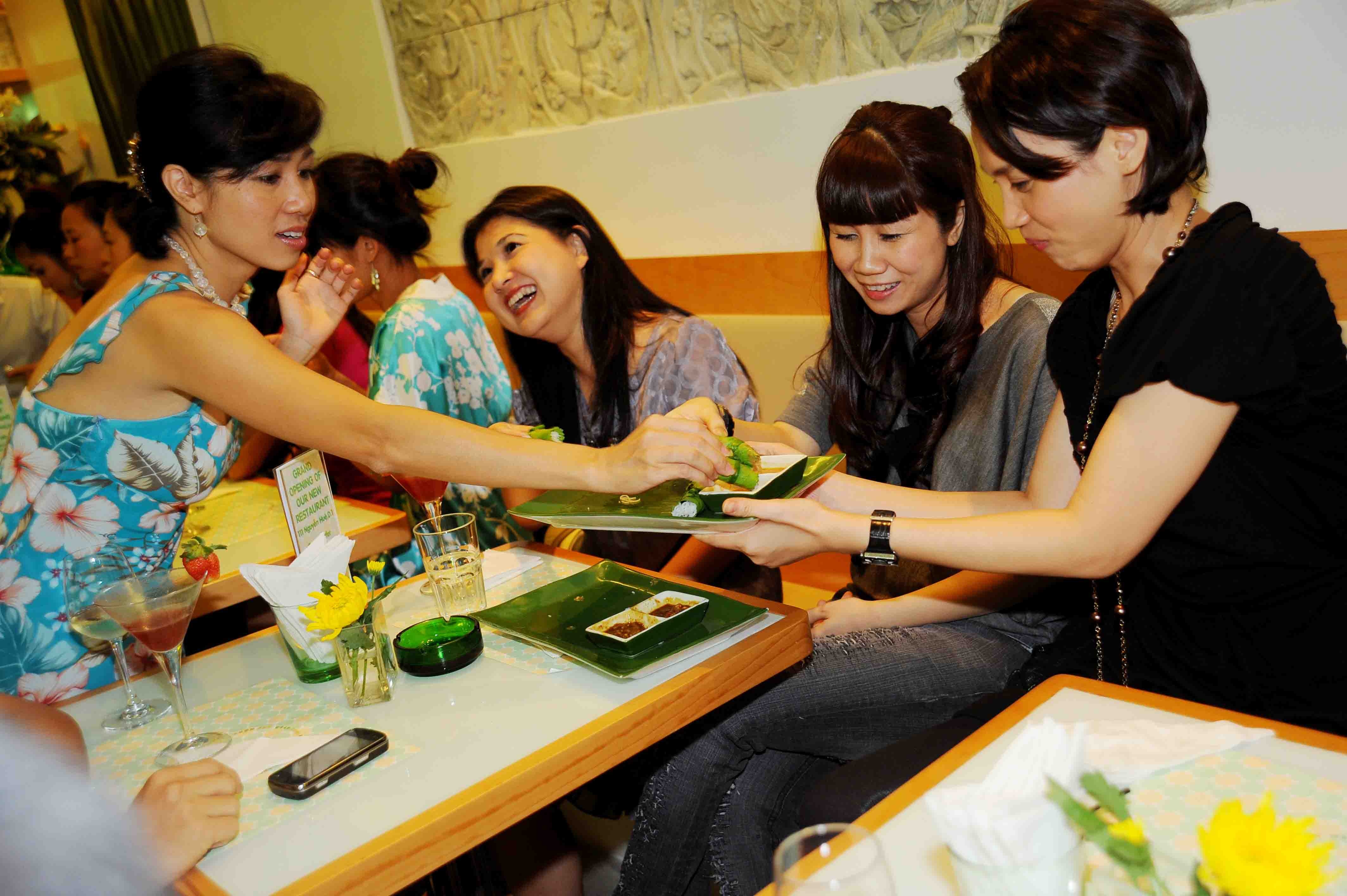 | Thực khách có thể vừa trao đổi trò chuyện vừa hít hà vị cay và thơm lừng của lẩu, món cuốn hòa quyện cùng nước chậm đậm đà, mang đậm phong cách Việt. |