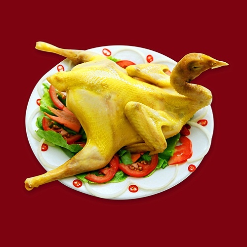 | Gà quay nguyên con không chỉ vàng nâu óng ả bắt mắt mà còn mềm thơm đậm vị, có thể ăn cùng cơm lại vừa có thể làm món nhậu. |