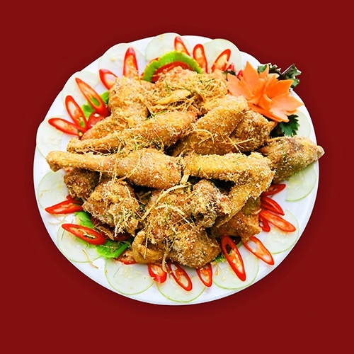 | Món gà rang muối tưởng chừng đơn giản nhưng khá phức tạp, phải thực hiện nhiều công đoạn chế biến. Do đó, thực khách ra ngoài hàng có thể gọi cho mình một đĩa gà rang muối đầy đặn như thế này. Lớp vỏ gà giòn rụm thơm ngon nhưng bên trong vẫn giữ được vị gà ngọt chứ không bị khô, vừa ngon miệng lại sang trọng. |