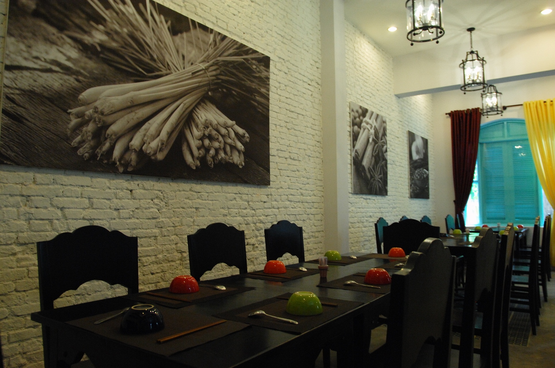 Nằm trong ngõ phố yên bình trên đường Trần Quốc Toản, quận 3, TP.HCM (đoạn cuối đường Pasteur), nhà hàng Scent Garden (vườn hương vị) nhìn bên ngoài có vẻ đơn giản, khiêm tốn với một vách tường kiên cố đồng thời là bảng hiệu. Nhưng chỉ cần bước qua khỏi cánh cổng hờ hững, bạn sẽ không khỏi ngạc nhiên với một khu vườn Nam Bộ đang mở ra xanh mướt trước mắt mình. Màu xanh này gợi nhớ ít nhiều mảnh sân ở quê nhà, những ô cửa sổ lá sách màu xanh ngọc mang hơi hướm những ngôi biệt thự cổ Đông Dương.