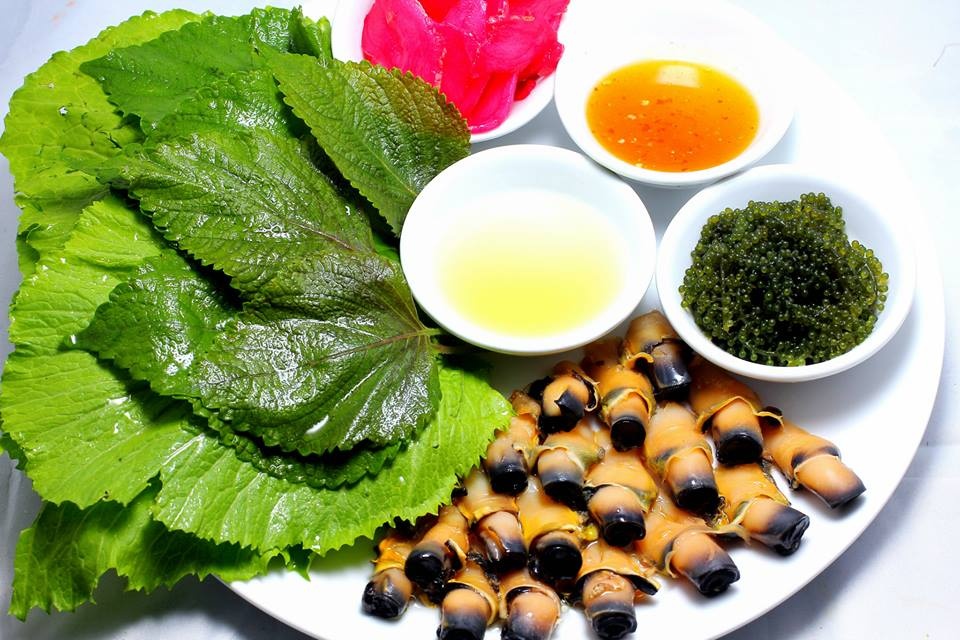 Ngoài ra, quý khách còn được thưởng thức những món ăn hải sản như gỏi sứa, gỏi cá mai, gỏi ốc giác, cá bò da nướng ớt xanh, cá tắc kè nướng mọi, cá bò đen nướng mọi, mực một nắng chiên mắm nhĩ, tôm biển hấp bia…