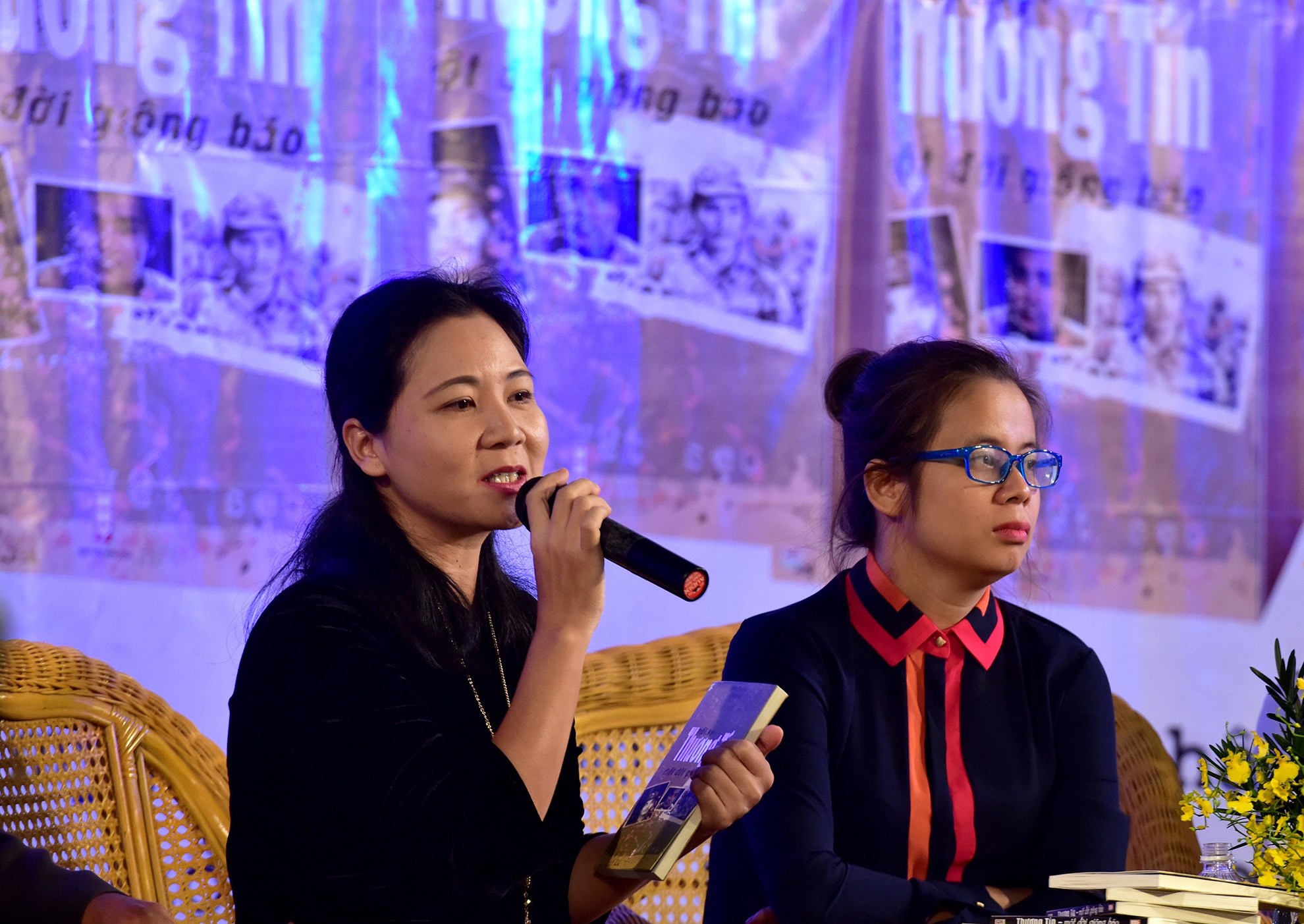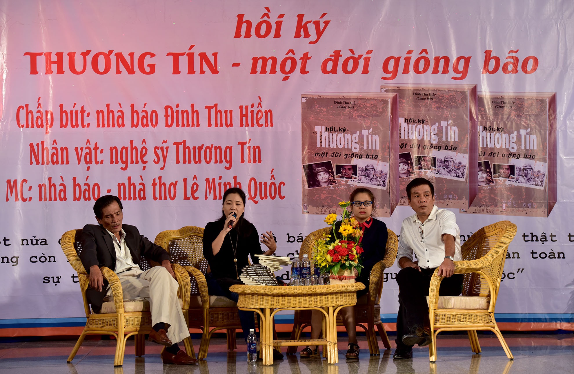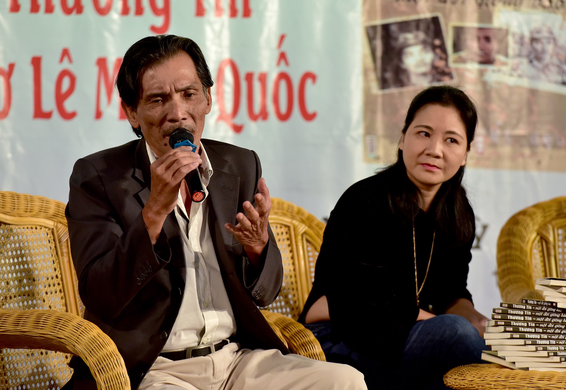Thương Tín cảm ơn Diễm My trong buổi ra mắt hồi ký