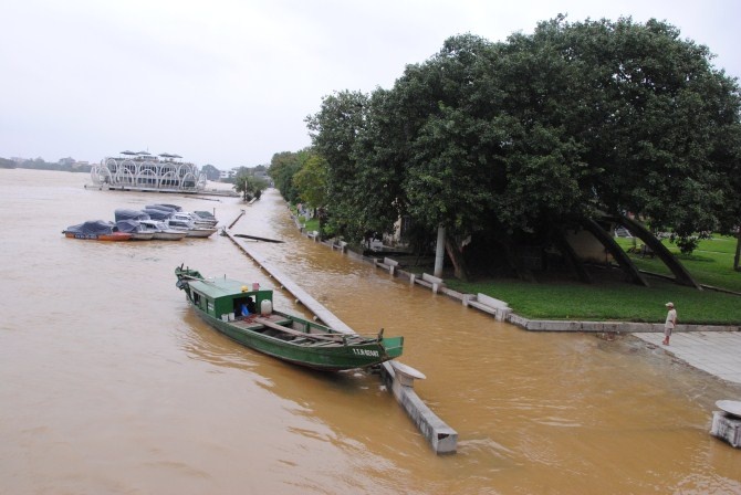 | Nước tràn vào công viên ven sông Hương đoạn TP Huế. |