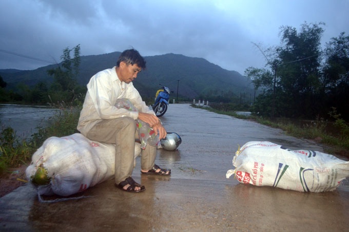 Anh Trương Văn Hải (xã Quế Lộc) cho biết vợ anh mới sinh nên ở nhà mẹ vợ ở thôn Trung Nam nhưng anh không đem áo quần, thức ăn vào được vì nước ngập lút đường.