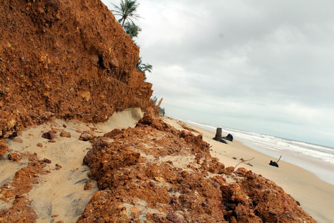 | Sóng lớn đã gây xâm thực suốt một dãi dài bờ biển xã Vinh Hải. |